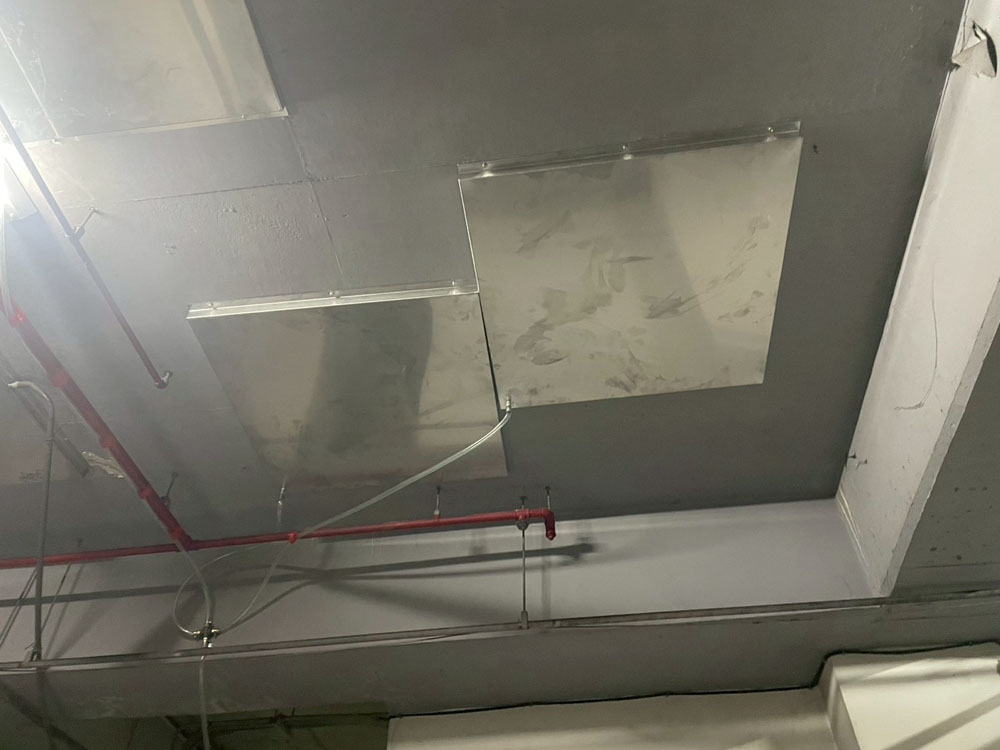 天花板水泥坍塌 做防水 白鐵板XC型鋼骨架支撐